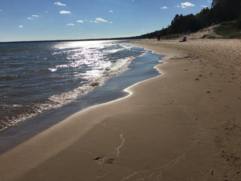 Whitefish Dunes State Park has a sand swim beach with three access points, one which is ADA accessible and the other two with stairs leading to the shore. Dogs have their own designated beach area for swimming. Beach access varies with water levels. Please check Whitefish Dune’s website for the latest information.